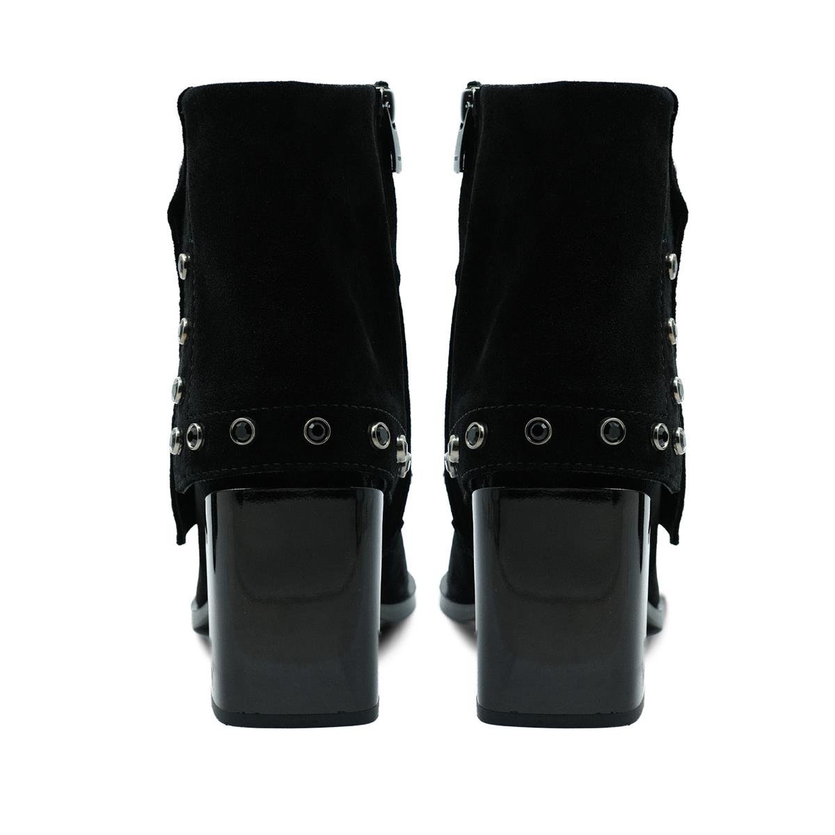 Bu bot, %100 süet deri malzemesiyle kalitesini ortaya koyuyor. Sivri burun yapısıyla rahat bir kullanım sunar. Hem iç tabanı deri olduğu için konforludur hem de kauçuk tabanıyla dayanıklılık sağlar. Pratik bir kullanım için fermuarlıdır. 8 cm'lik topuk yüksekliğiyle şık ve rahat bir duruşa sahiptir.
