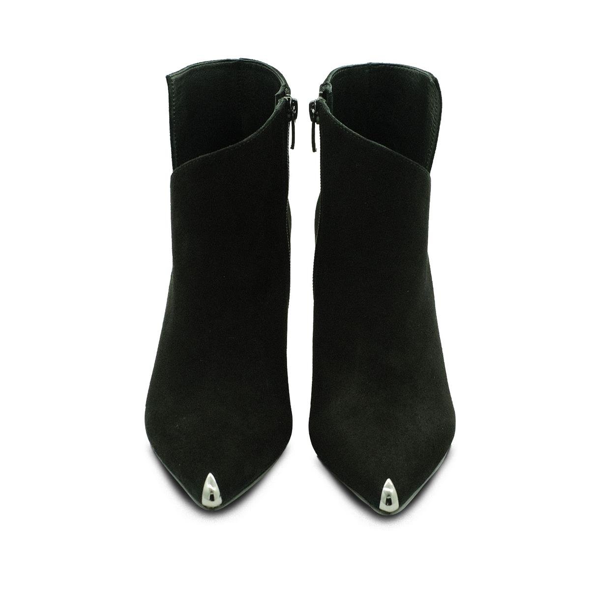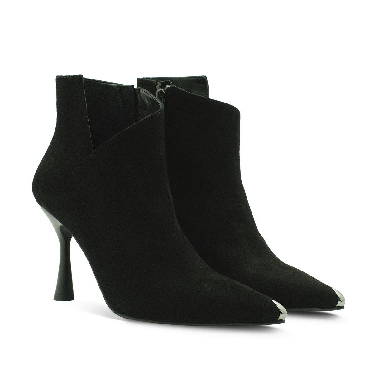 Bu bot, %100 süet deri malzemesiyle kalitesini ortaya koyuyor. Sivri burun yapısıyla rahat bir kullanım sunar. Hem iç tabanı deri olduğu için konforludur hem de kauçuk tabanıyla dayanıklılık sağlar. Pratik bir kullanım için içten fermuarlıdır. 9.5 cm'lik topuk yüksekliğiyle şık ve rahat bir duruşa sahiptir.