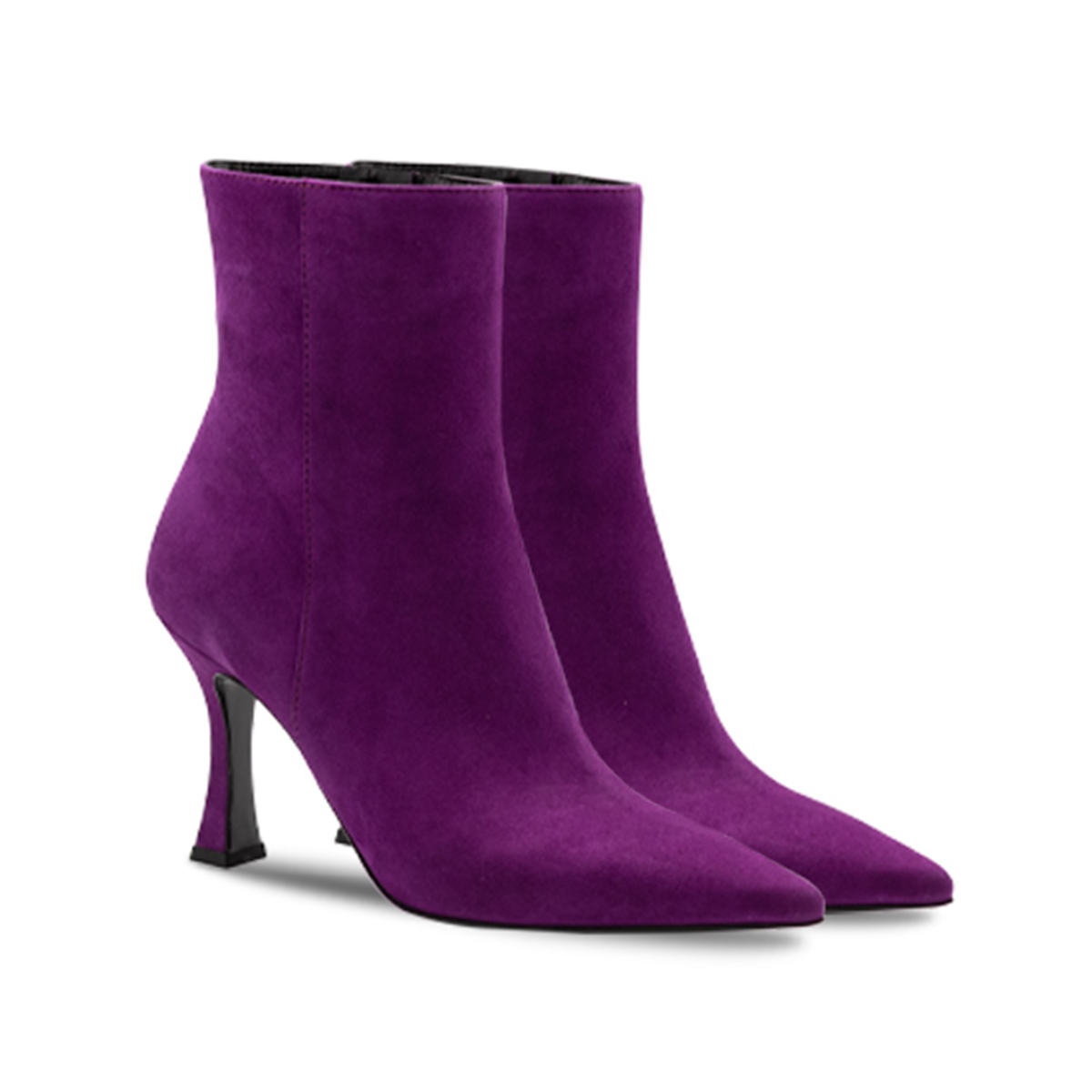 Hakiki süet deriden ustalıkla üretilen bu fermuarlı, sivri burunlu bot; hem estetik hem de performansı bir araya getirir. İç yüzeyindeki tam deri kaplama ayağı doğal biçimde sararak gün boyu konfor sunar. Kaymaz tabanı her adımda güven verirken, 9.5 cm zarif topuğu stile sofistike bir yükseliş katar. Modern, iddialı ve kusursuz görünüm arayanlar için ideal bir parça.